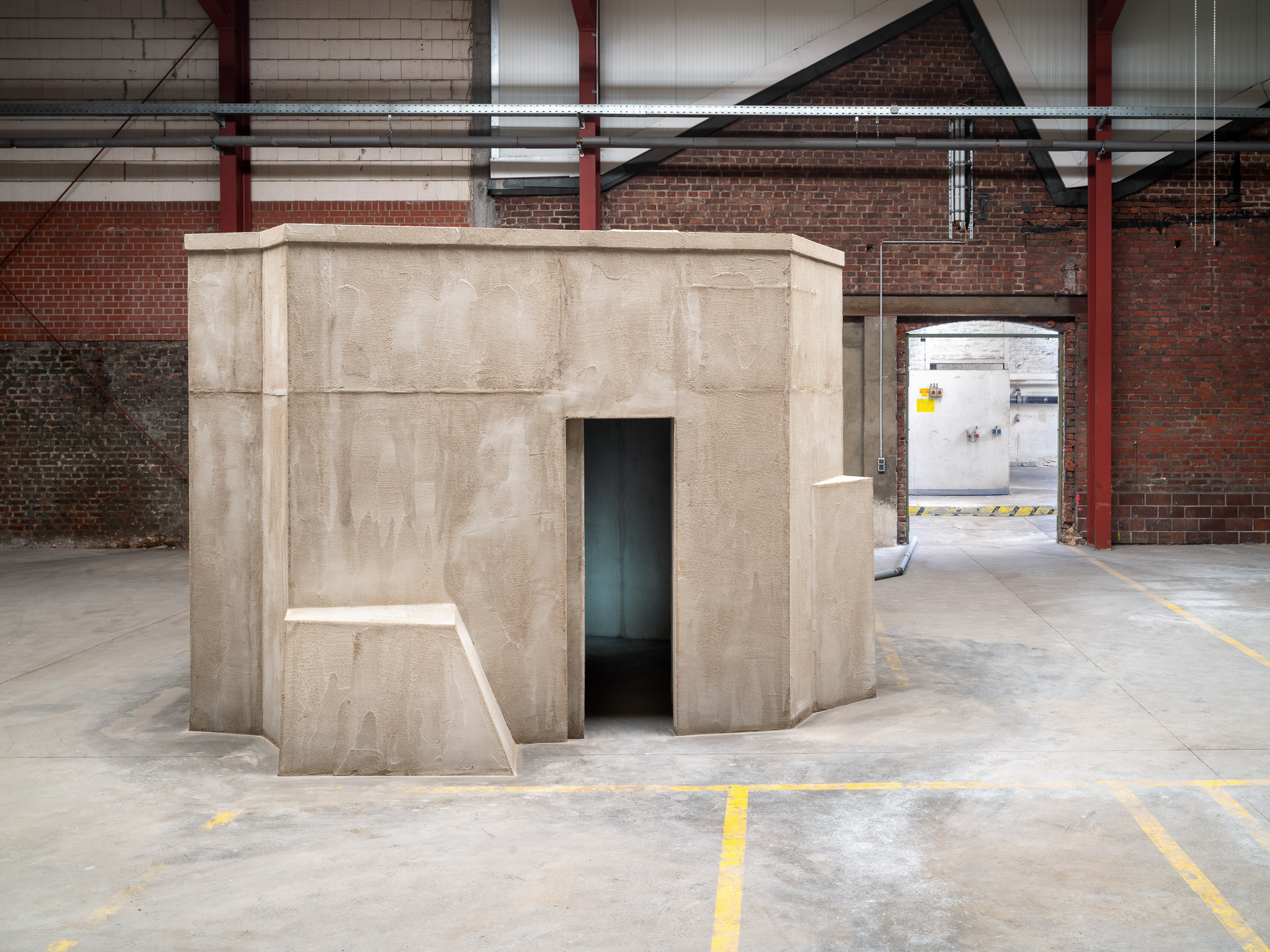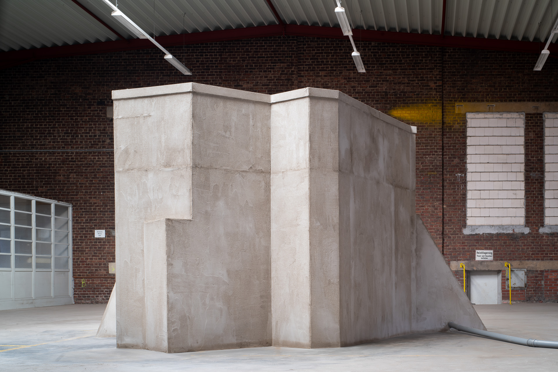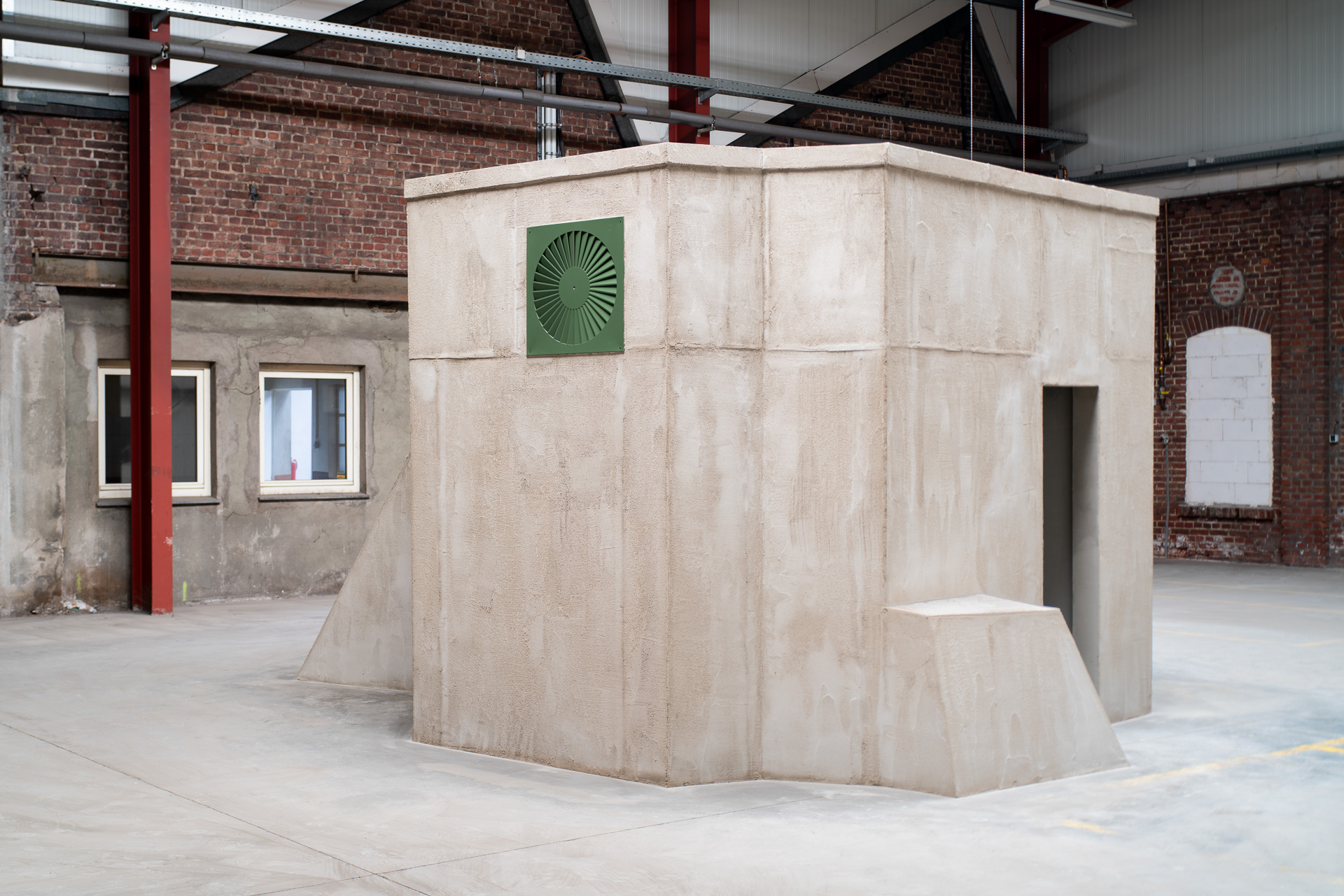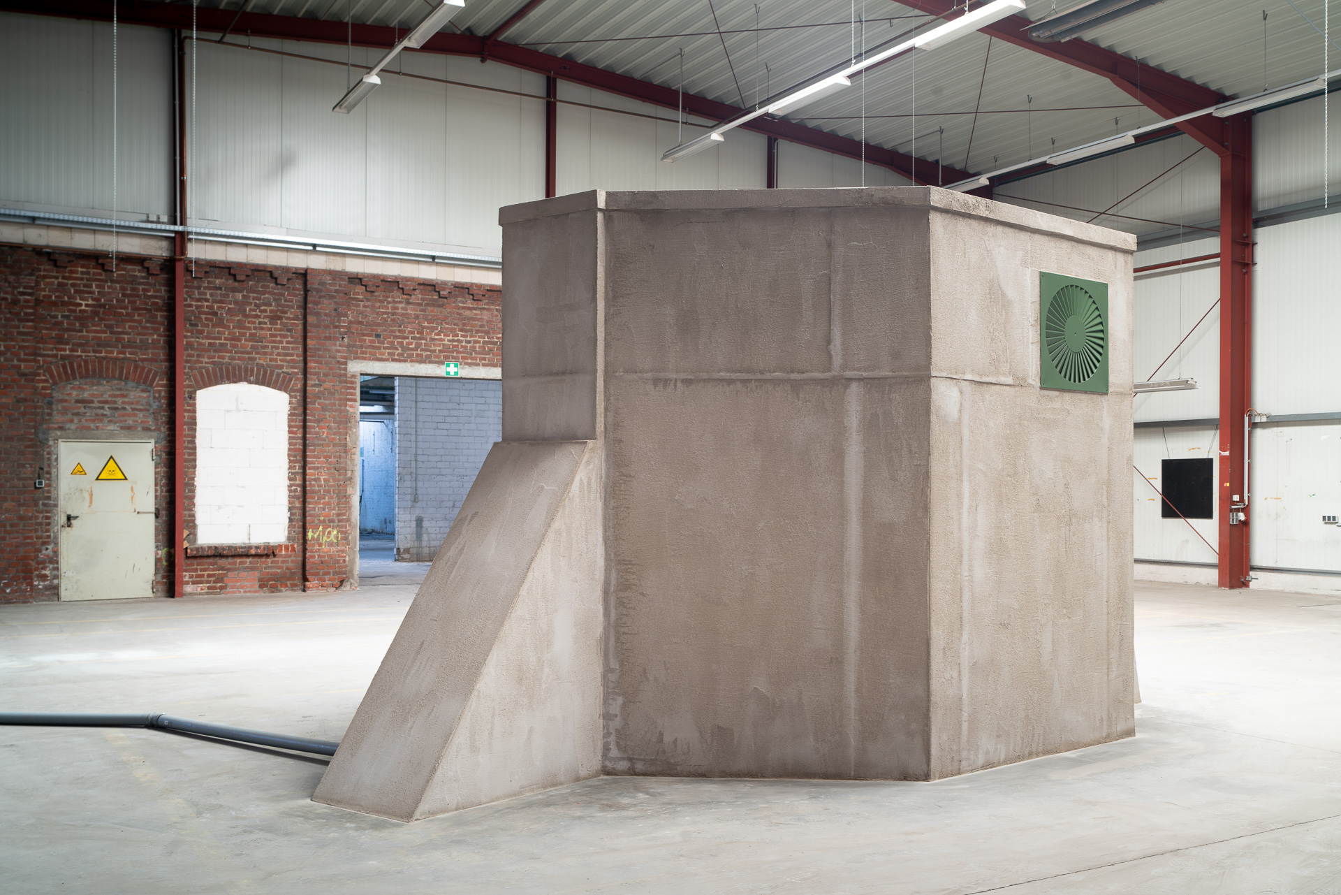 Time, as we experience it, stands still in the face of Thomas Woll’s sculpture Krypto-C-Modul. Past and future are depicted in the present in forms and materials. It is a bunker and a spaceship in one, everything at once, here and now. The work is a metaphor for a vision. Krypto-C-Modul is not only an interface between times. It is also the manifestation of an idea, a concept, a vision that has been transformed into reality. Just as Glück Haan will first develop and grow from one step to the next, Thomas Woll has created his work. He arrived with a rough sketch, many details still vague as ideas in his luggage. The rest emerged in the course of its realization, becoming a living form. This process of the artwork’s creation reflects the present and future of GlückHaania. In this respect, since here too the architectural sketch is initially the basis for a structure that will undergo many creative changes in the process of realization, there remains room for the unexpected.